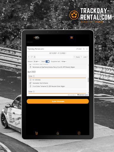 Buche die besten Rennfahrzeuge für deinen Trackday auf verschiedensten Strecken Europas. Lade die App herunter, Buche dein Fahrzeug und gehe auf die Piste.