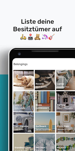 * Listen Sie Ihre Sachen einfach auf, indem Sie Bilder machen und bestimmte Begünstigte hinzufügen.