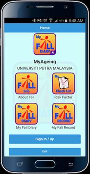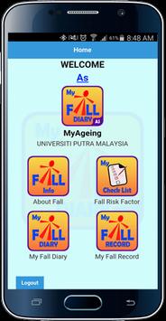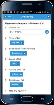 The aim of MyFall Diary app is to assist older faller / user to record falls occurrence, gather information on the fall history and provide such informations