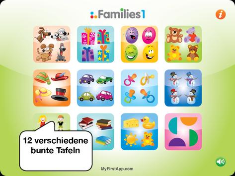 In Families 1 bestehen die Familien aus 4 Bildern, die sich alle ähneln und eine geringe visuelle Abweichung aufweisen. Es wurde für Kinder von 2 Jahren entworfen.