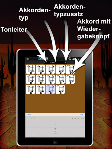 - Die Möglichkeit, jeden angezeigten Akkord abzuspielen,