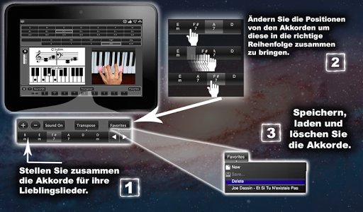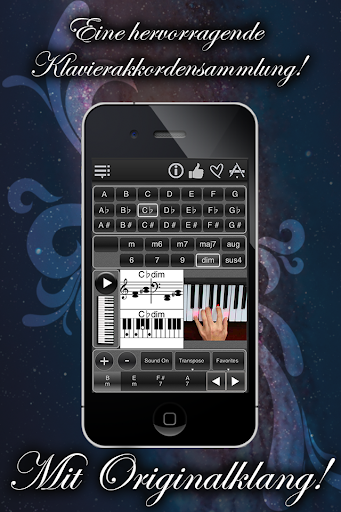 Diese App beinhaltet über 120 Klavierakkorde. Mit diesen Akkorden können Sie alle Ihre Lieblingslieder auf Klavier/Pianoforte, Orgel oder Flügel begleiten!