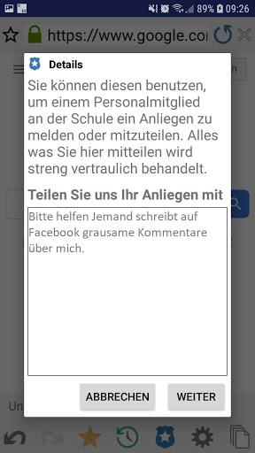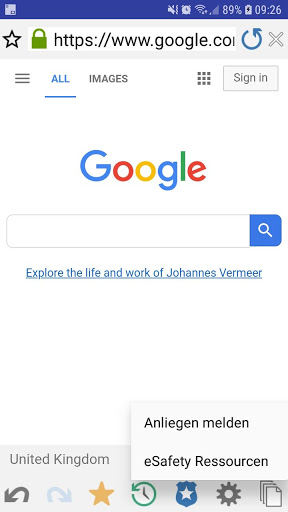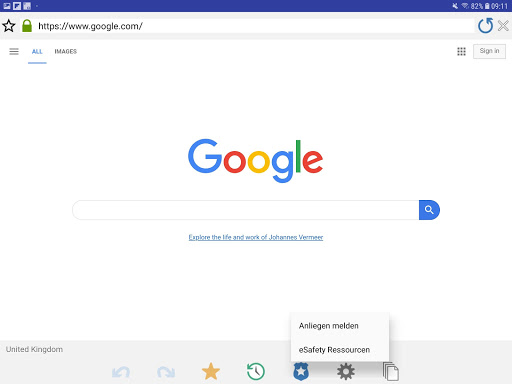 eSafety-Ressourcen (Bildungswesen-Version) – Das eSafety-Ressourcen Symbol in der Symbolleiste der Browser App bietet Schülern sofortigen Zugriff auf eine Liste geeigneter Online-Unterstützungsressourcen.