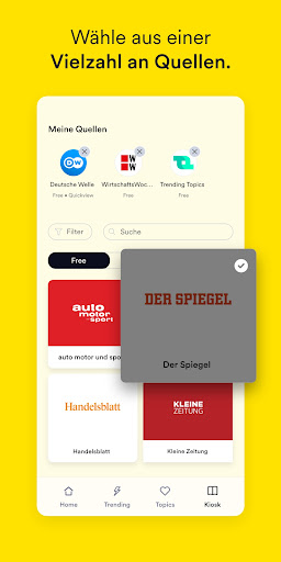 Regional, national, international – wir bieten dir alle Quellen, die du brauchst! Und zwar nicht nur aus Magazin und Zeitung aus Deutschland, Österreich und der Schweiz. Artikel gibt’s in folgenden Sprachen bei uns: Englisch, Deutsch, Spanisch, Türkisch, Italienisch, Portugiesisch, usw. Alle Medien findest du in unserem Kiosk. Dort kannst du auch deine Quellenauswahl jederzeit anpassen. Lies alles von der Zeit, Spiegel Online, SZ, FAZ, Presse, der Standard, Handelsblatt, Bild und von vielen weiteren Medien. Entdecke unser vielfältiges Angebot aus Zeitungen und Magazinen (regional, national, international).