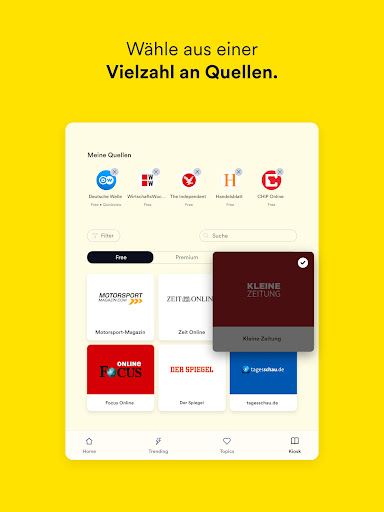 Du willst ganz smart alle Artikel zu deinem liebsten Thema lesen? Dann bist du bei dieser News App richtig! Mit unserer Topics Funktion kannst du ganz einfach deinen Interessen folgen und immer up to date bleiben. Entdecke jetzt diese und weitere Funktionen in unserem personalisierten Service!