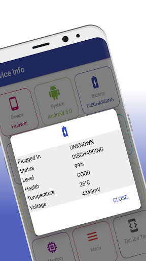 Memory Info: Total and available RAM, as well as internal /External Storage information about your device.