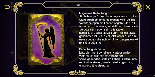 Die Anwendung präsentiert ein Designer 3D Tarot Deck aus dem Major Arcana.