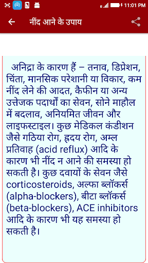 in this App नींद न आने के अचूक उपाय - Nind ane ke upay you will get to know about best tips for sleeping betterley. After waking up from sleep if you do not feel fresh and rejuvenated. Day fatigue, drowsiness and irritation continues. Do not sleep on lying down at night to sleep. Are not able to sleep despite being tired of. Night opens to sleep, then again it is difficult to sleep. Unwillingly morning opens too early sleep. And it is constantly a few days, then a few weeks or longer, you may be suffering from insomnia. It can be cured.