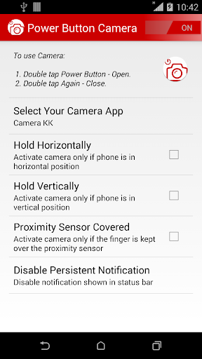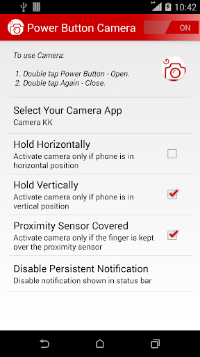 With this option enabled you should keep your phone in horizontal or vertical position while double pressing Power Button.