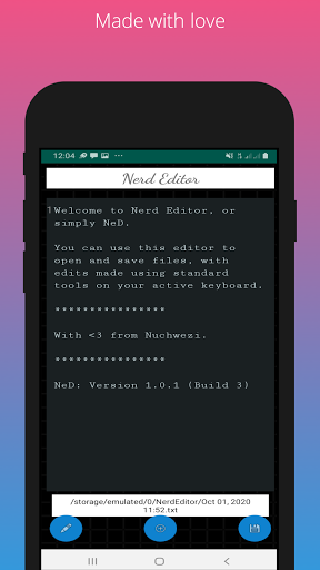 NeD can now show up in your phone's text and file sharing prompts as a text and file handler. You can essentially directly launch NeD from your file manager by clicking on compatible file types.