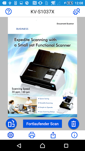 Mit dieser Anwendung können Scans direkt vom Panasonic Dokumenten-Scanner an Ihr Smartphone oder Tablet gesendet werden.