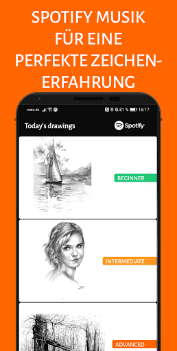 DrawBy hat integrierte Spotify-Playlisten. Höre positive und entspannende Musik und genieße Sie die Übung noch mehr.