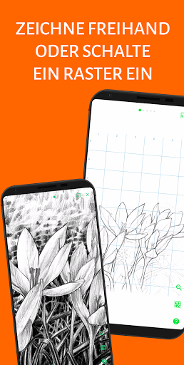 Nimm Papier und Stifte. Wähle eines der tollen Motive aus. Zoome heran, drehe das Telefon oder schalte ein Künstlergitter ein, um das Abzeichnen zu erleichtern. Du kannst die Lektionen auch auf einen größeren Bildschirm streamen, wenn du ein Chromecast-Gerät besitzt. Es ist der beste Weg, um z.B. gemeinsam mit deinem Kind zu zeichnen.