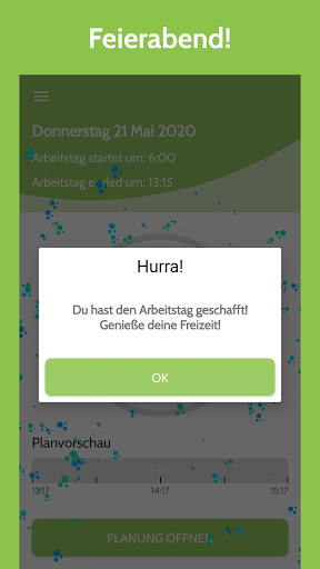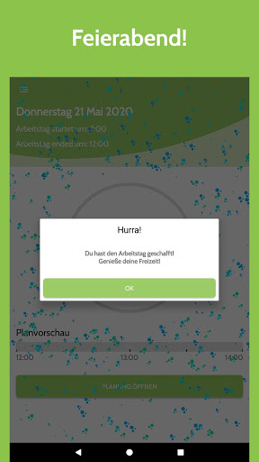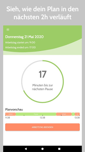 • Die App gibt dir eine Arbeits-/Pausenübersicht der nächsten 2 Stunden, damit du dich perfekt vorbereiten kannst.
