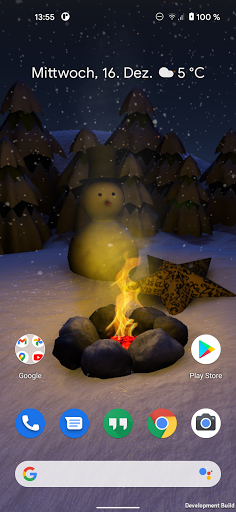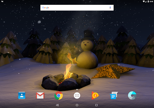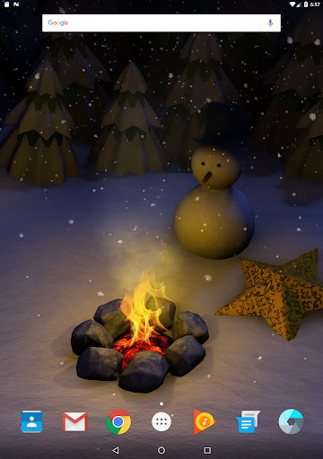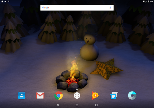 Paper Winter Live-Wallpaper Winter ist ein realistischer 3D Live Hintergrund in einer winterlichen verschneiten Nacht an einem gemütlichen Lagerfeuer. Das perfekte Hintergrundbild für eine winterliche Stimmung zu Weihnachten.