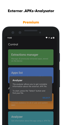 • Der Analysator nicht installierter Anwendungen, die eine externe APK-Datei verwenden.