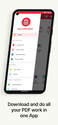 Der PDF -Editor ist ein leichtes PDF -Tool, das speziell für mobile Geräte erstellt wurde. Die Smart PDF -Editor -App bietet eine Vielzahl von Auswahlmöglichkeiten für den Umgang mit PDF -Dateien. Konvertieren Sie jede Datei (Excel, Barcode, Bild, Text) in PDF.