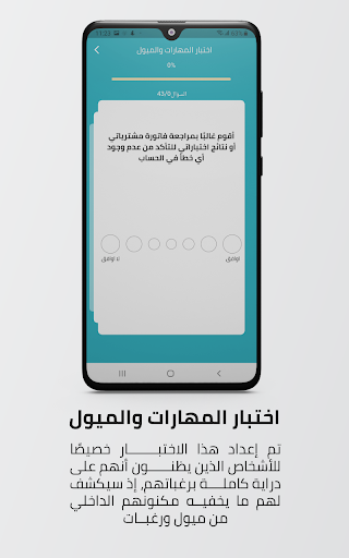 ist ein Test, der insbesondere junge Menschen in der Region Naher Osten abzielt, um sie in Merkmale einzuführen. Persönlich, ihre geistigen Fähigkeiten und wissenschaftlichen Neigungen und bietet ihnen einen Kompass, der sie zur am besten geeigneten Universitätspezialisierung für sie führt. BR>: Der Persönlichkeits- und Universitätspezialisierungstest ist durch die Möglichkeit gekennzeichnet, eine Chance zu sein, einfach und einfach zu sein.