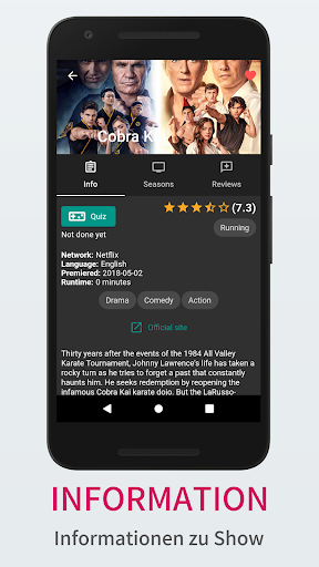 💬 Details: Alle Shows enthalten Beschreibungen, Episoden, Bilder und alle Besetzungsinformationen, um Sie auf dem Laufenden zu halten.