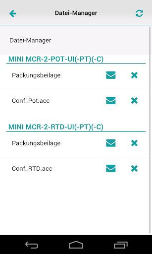 Erstellte Konfigurationen, sowie heruntergeladene Produktunterlagen können lokal auf Ihrem Smartphone gespeichert oder per Email versendet werden.