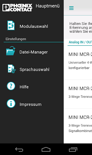 Die MINI Analog Pro App von Phoenix Contact bietet Ihnen die Möglichkeit der drahtlosen Kommunikation zwischen Ihrem Smartphone und den Trennverstärkern der MINI Analog Pro Familie per Bluetooth oder NFC (Near-Field-Communication).