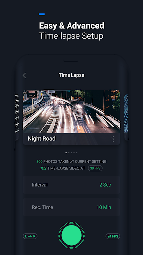 There are 10 preset time-lapse modes built-in the app which allows you start catch cinematic time-lapse videos in a single tap. You can adjust the preset settings of those modes and it’s also available to customize your own time-lapse library. Time-lapse has never been easier.