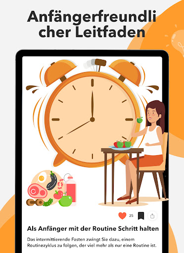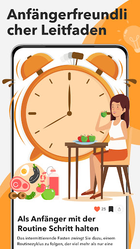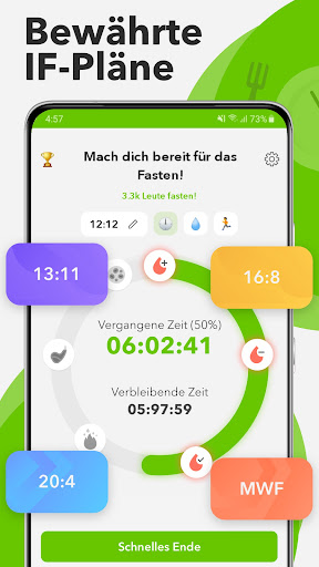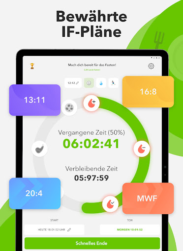 Sie können mit dem Anfängerfasten beginnen, langsam und allmählich können Sie sich an die erfahrenen und die Profis anpassen. Sie erhalten einen Starttimer und einen Zieltimer, der Ihren Fortschritt überwacht.