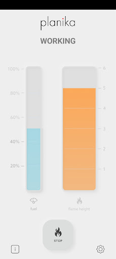 - Adjust the flame level using a swipe (up to 6 flame heights available)