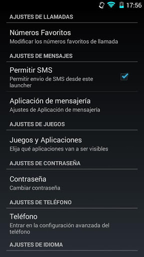 Dieses Menü ist nur mit Passwort erlaubt. Sie konnen durch das Symbolschloss im Hauptmenü zugegriffen. Sie konnen alle Aspekten der Launcher in diese Menü konfigurieren: Sprache, Anpassungsoptionen.