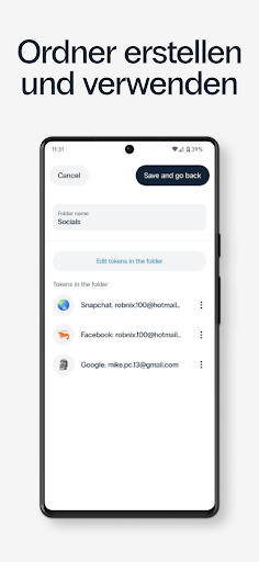 - Bequeme Aufteilung von OTP-Tokens nach Ordnern.