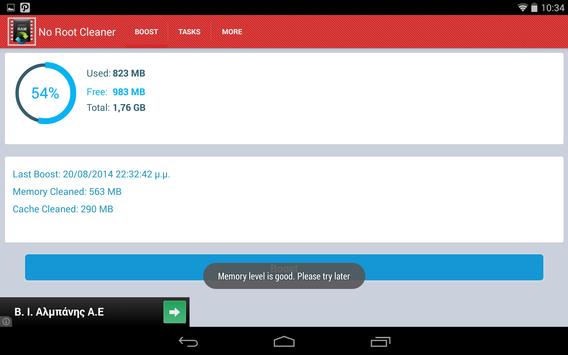 Clean your ram and cache with this super fast and easy app "No Root Cleaner".