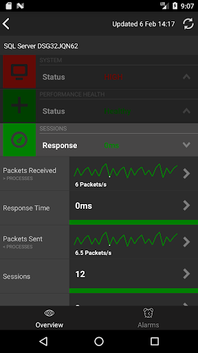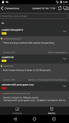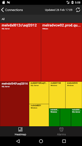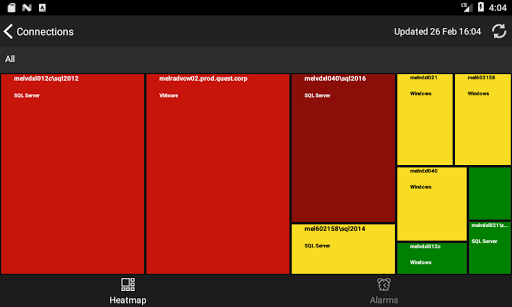 a heat map cell for a list of alarms on that server, and then tap an Alarm item to