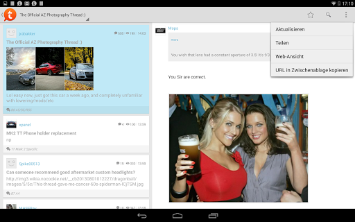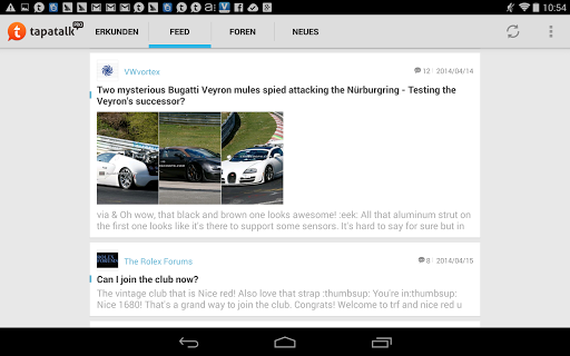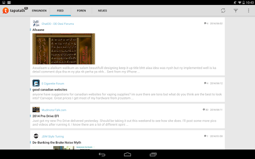 Bleiben Sie mit dieser preisgekrönten mobilen App nun auch ständig außerhalb mit Ihren Lieblingsforen verbunden. Tapatalk bietet Ihnen in einer optimierten mobilen Schnittstelle Zugriff auf über 50.000 Internet-Communities. Schnelle und zugängliche Funktionen machen das Lesen, die Entsendung, den Austausch von Bildern und das ständige in Verbindung bleiben zum Austausch aktueller, privater Nachrichten, ein Kinderspiel! Tapatalk aggregiert Inhalte aus einem massiven Netzwerk von Communities, die eine Vielzahl von Interessen, von Automobil-Enthusiasten bis Elternschaft, Garten und Wandern abdecken - Sie werden ganz sicher ein Forum finden, das zu Ihren Interessen passt und voller anderer Enthusiasten ist, die Ihre Leidenschaften teilen.