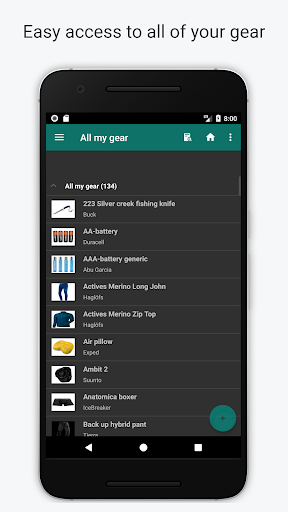 • Easily build a digital database of all your outdoor gear with information about weight, storage location, brand and much more