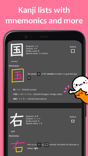 Eine niedliche, werbefreie und angenehme Lernerfahrung wartet in der Renshuu-Community auf Sie!Die kostenlose Version ist unbegrenzt: Es gibt keinen Timer, bevor Sie gezwungen sind zu bezahlen!