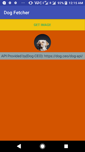 This is my first application on Android platform.If you love dogs just install this app and get a random image of dog anytime.Just tap that 'Get Image' button.API courtesy from Dog-CEO. Please visit their website at https://dog.ceo/