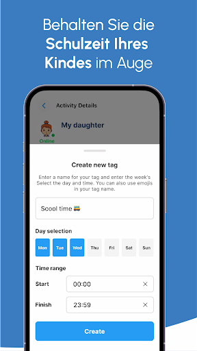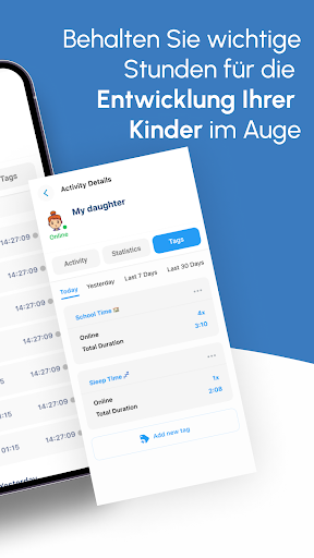 - Tag-Funktionalität: Identifizieren Sie Schul- und Schlafzeiten mit anpassbaren Tags, die eine bessere Kontrolle über angemessene Nutzungszeiten basierend auf individuellen Bedürfnissen ermöglichen.