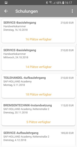 Sehen Sie welche Schulungen angeboten werden und melden Sie direkt und unkompliziert an. Eine Anmeldungsbestätigung erhalten Sie separat per Email.