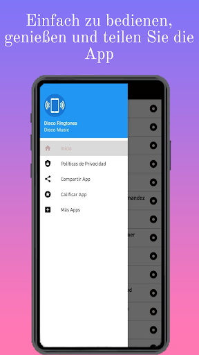 Laden Sie jetzt die besten Töne der großen Disco-Tanzmusik-Bands kostenlos herunter, diese Effekte und Klänge hervorragender Instrumente, die dieses Musikgenre einzigartig machen. Die Anwendung mit der besten Musik auf Englisch verfügt über Funktionen, mit denen Sie kostenlose Töne für Anrufe platzieren können , Alarme und Benachrichtigungen.
