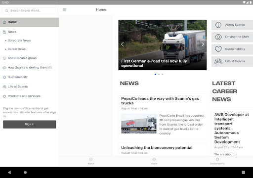 Scania ist ein führender Anbieter von Transportlösungen, darunter LKW und Busse für schwere Transportanwendungen in Kombination mit einem umfangreichen produktbezogenen Serviceangebot.Scania bietet Fahrzeugfinanzierungs-, Versicherungs- und Mietdienste an, mit denen sich unsere Kunden auf ihr Kerngeschäft konzentrieren können.Scania ist auch ein führender Anbieter von Industrie- und Meeresmotoren.