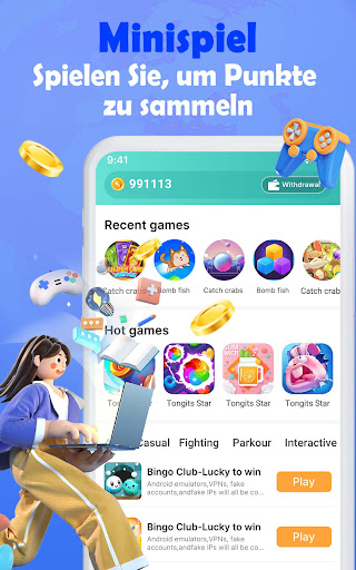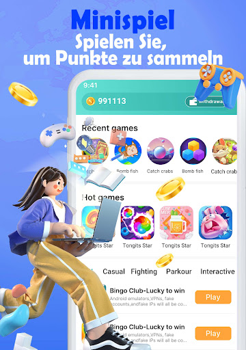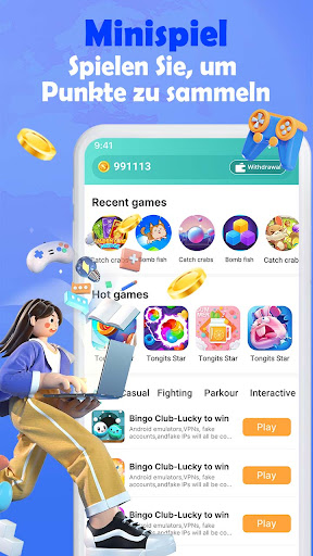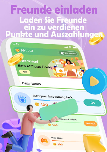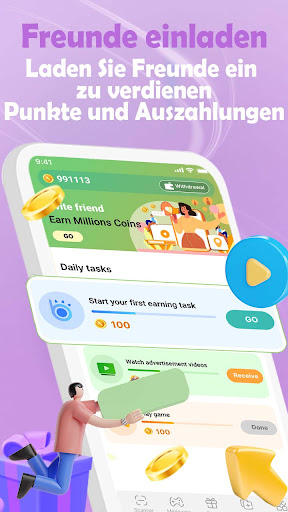 Money Game ist eine App, mit der Sie echtes Geld gewinnen können, indem Sie Spiele spielen oder Aufgaben erledigen. Wir bieten eine Vielzahl von Möglichkeiten, Münzen zu erhalten. Sie können Münzen verdienen, während Sie Spiele spielen. Je mehr Sie spielen, desto mehr Münzen verdienen Sie. Wir bieten dir viele Aufgaben, du kannst frei wählen und in wenigen Minuten Geld verdienen. Das Ansehen von Videos kann auch leicht Belohnungen verdienen.