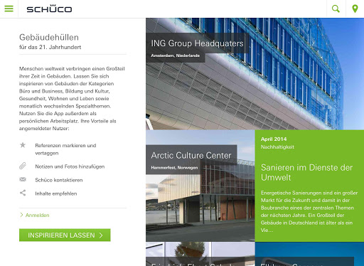und Arbeitens – immer aktuell in der Schüco Referenzen-App.