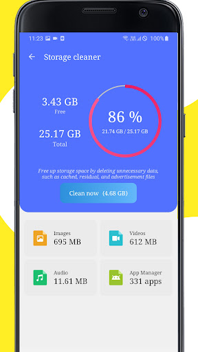 ✔ Clean up junk and delete image, video, audio and other document files in storage space
