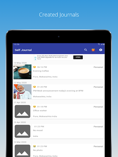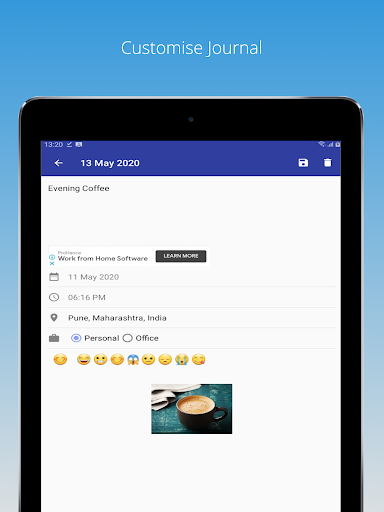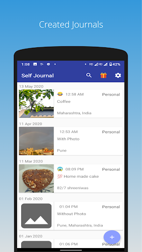 Self Journal is a customizable Diary. Create journal with your notes, photos, daily activity, place,