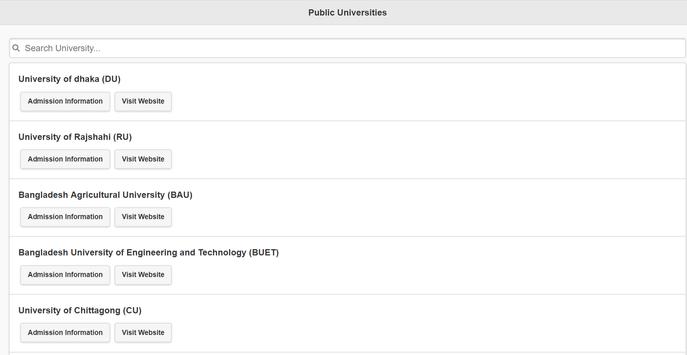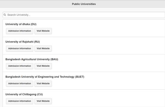 Students are able to find a university they interested to admit and then they can easily access to admission page of the university & they can can visit the university website as well.