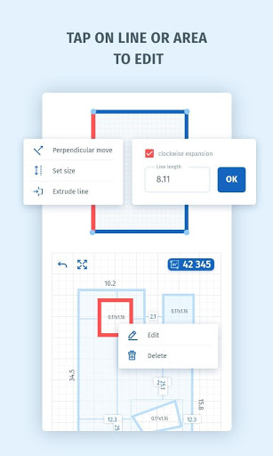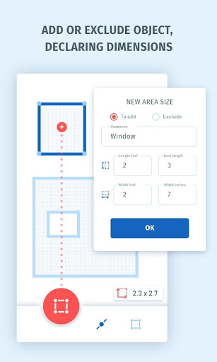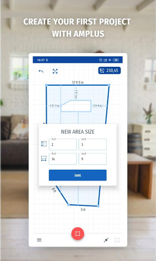 Eine sehr nützliche Anwendung zum Berechnen des Bereichs unterschiedlicher Formen. Es ist sehr oft notwendig, den Bereich eines Plans, einer Wand, eines Hinterhofs, ohne Fenster, Wege und einen Pool zu berechnen. Verschwenden Sie nicht Zeit mit den Berechnungen, Amplus wird es für Sie tun.