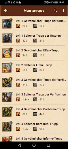 2. Informationen über Truppen und die Kosten ihrer Forschung.