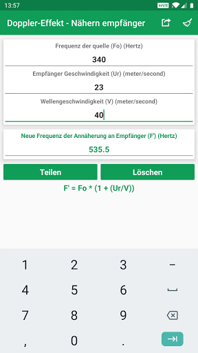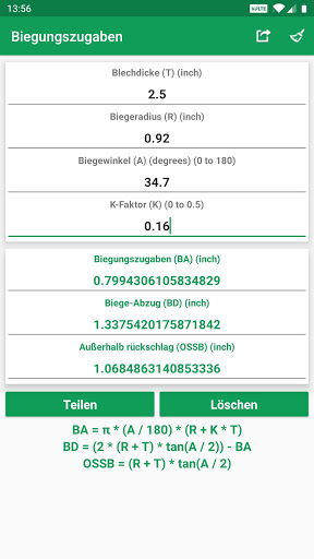 • Berechnete Werte und Ergebnisse können für soziale Medien, E-Mails, Nachrichten und andere freigegebene Apps freigegeben werden.