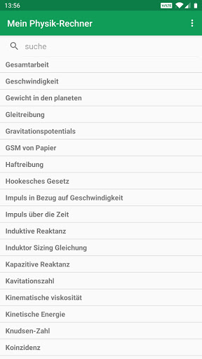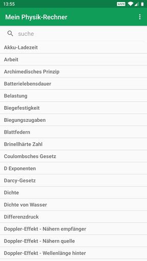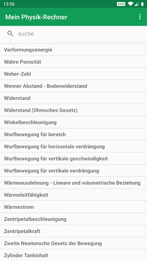 Mein Physik-Rechner enthält folgende 134 Taschenrechner: