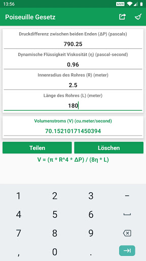 Berechnete Werte und Ergebnisse können für soziale Medien, E-Mails, Nachrichten und andere freigegebene Apps freigegeben werden.